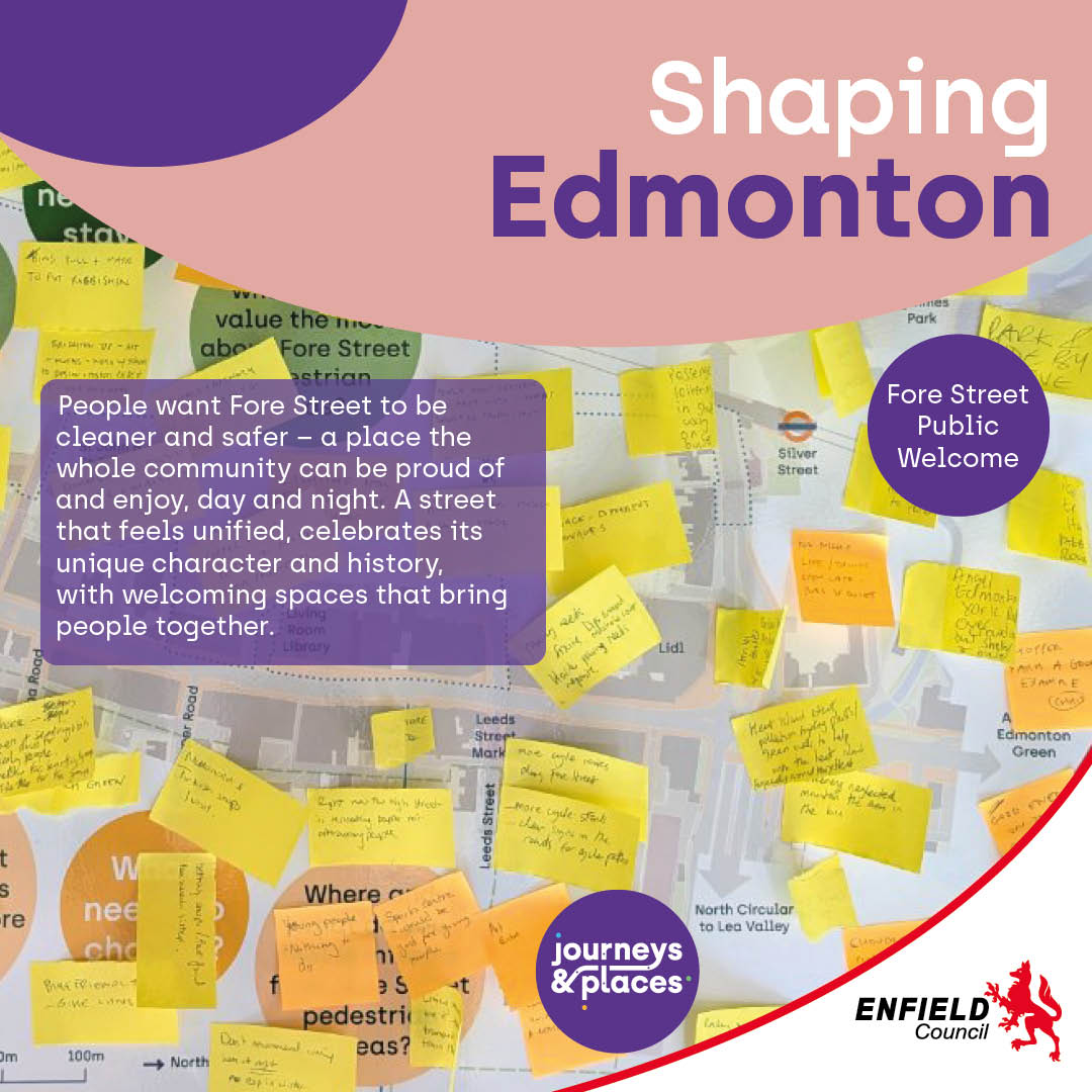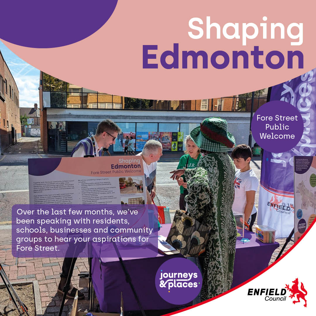At the event you'll have the opportunity to hear from the Leader of Enfield Council and the project team, and enjoy refreshments and entertainment including music, caricature art, embroidery and knitting workshops, and a special Shaping Edmonton board game delivered in partnership with Fore Street for All.
