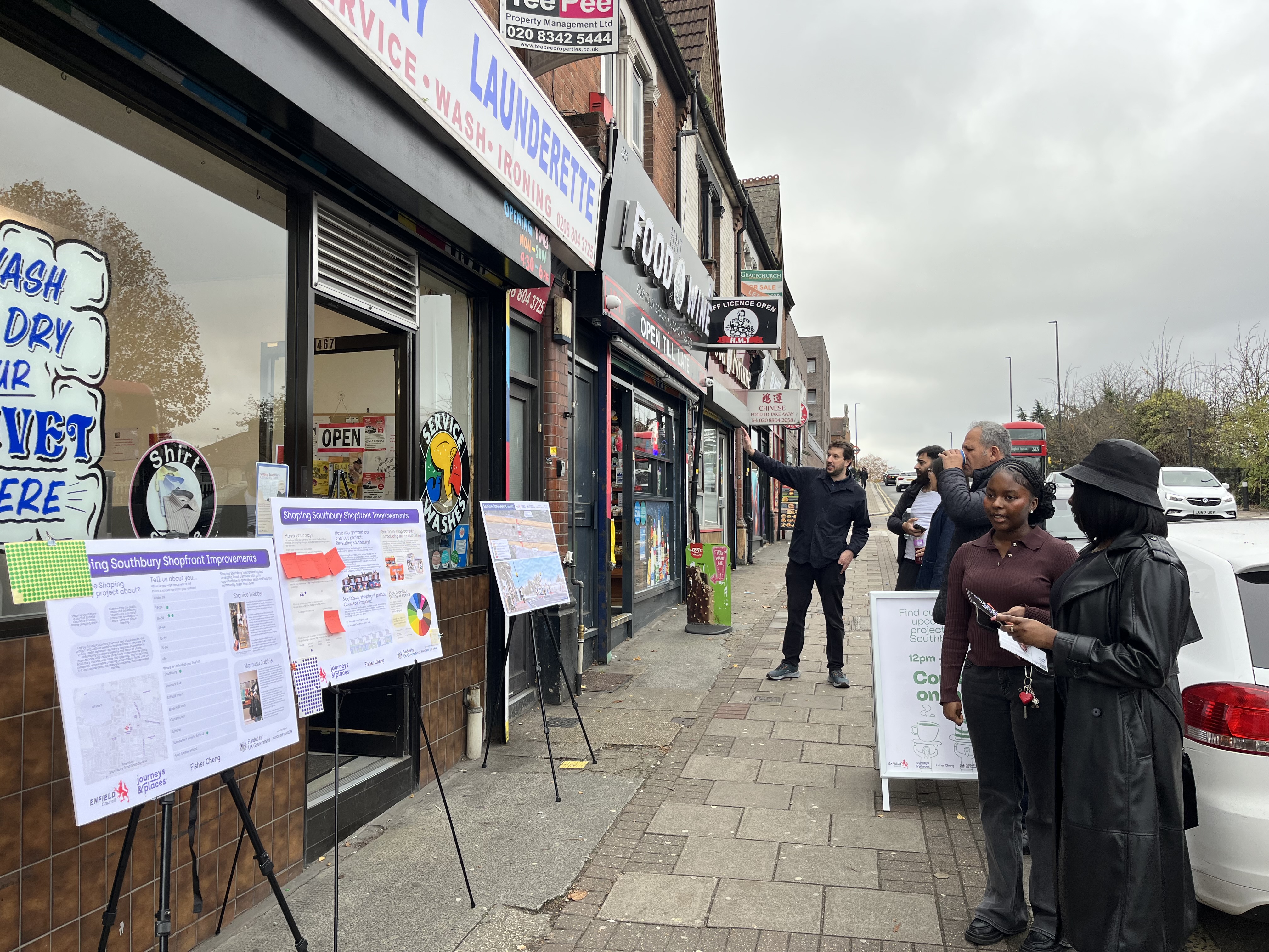 Two new young creatives, Mamusu and Shanice, have joined the Shaping Southbury Shopfront Improvements initiative and are working alongside Fisher Cheng. Together, they shared a series of boards showcasing ideas and aspirations for enhancing the shopfronts along Southbury Road. Residents actively participated, sharing their feedback and helping to shape the project with their feedback.